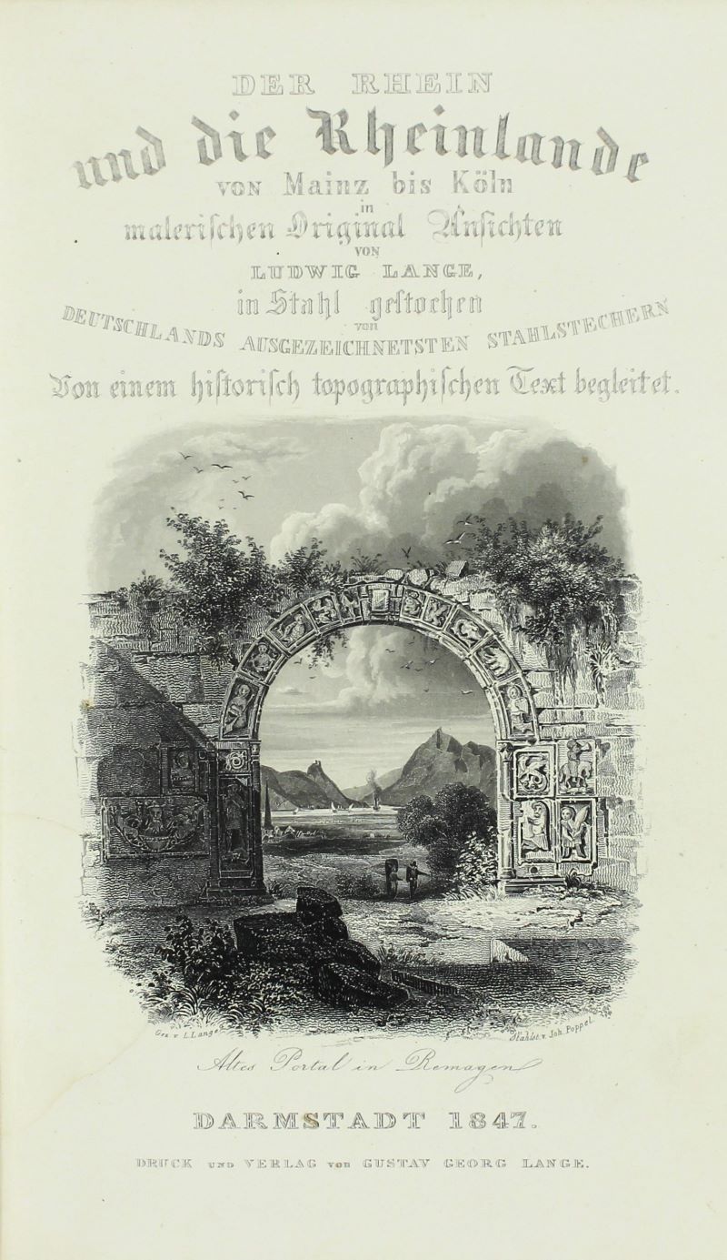 Der Rhein und die Rheinlande (von Mainz bis Köln) in malerischen Original Ansichten in Stahl gestochen von Johann Poppel, im Vereine mit Deutschlands bekanntesten Stahlstechern. Mit einem historisch topographischen Text begleitet. Darmstadt, Druck und Verlag von Gustav Georg Lange, 1846.
