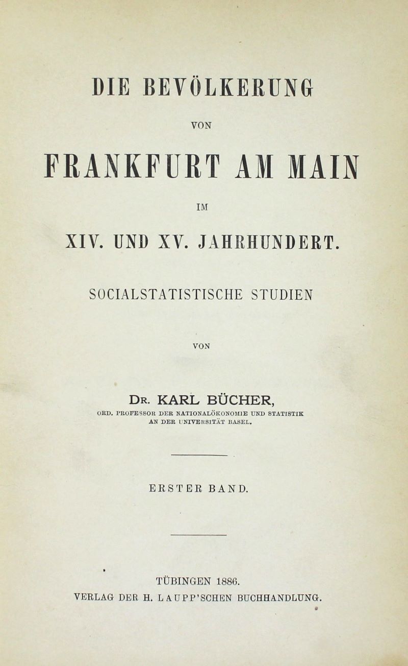 BÜCHER,K., Die Bevölkerung von Frankfurt am Main. Tübingen 1886