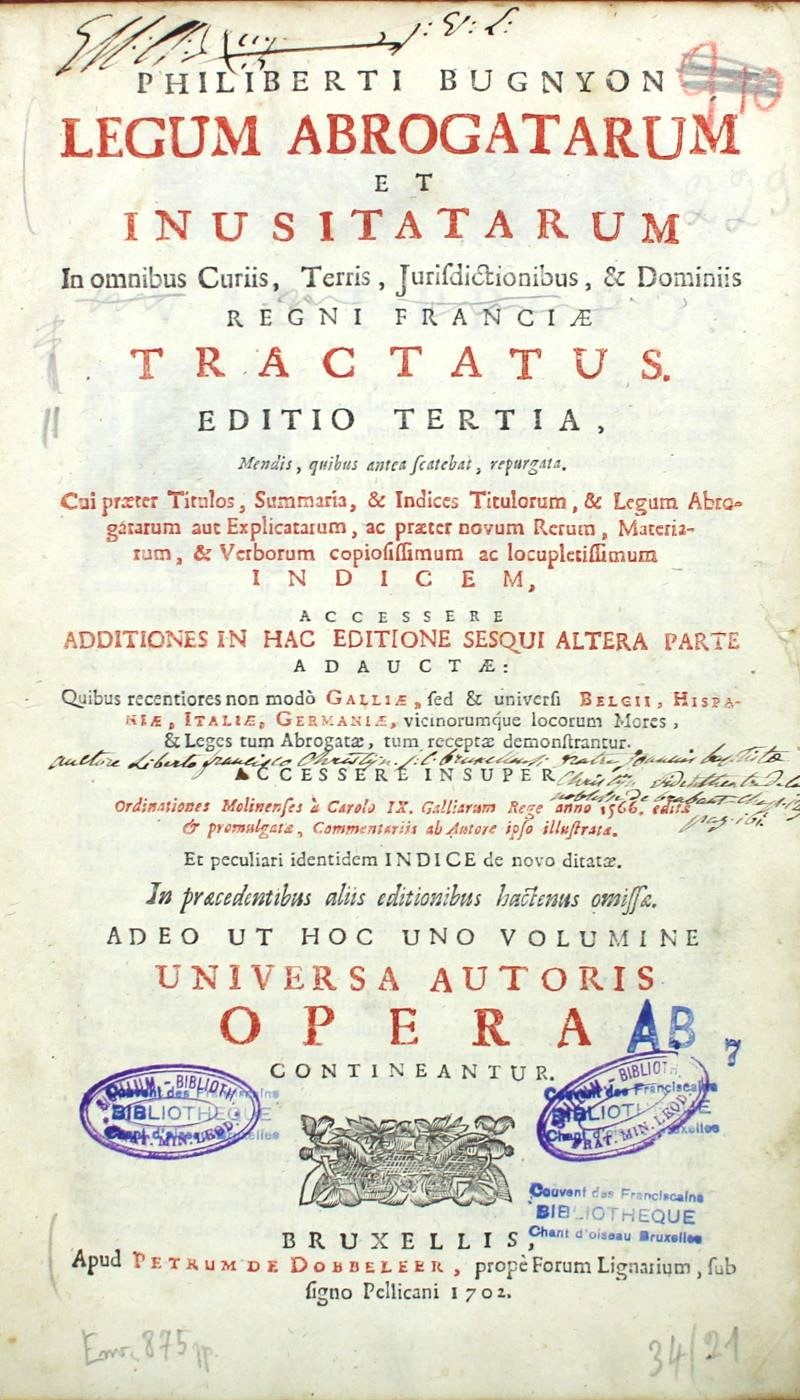 Bugnyon, Legum Abrogatarum. Brüssel 1702