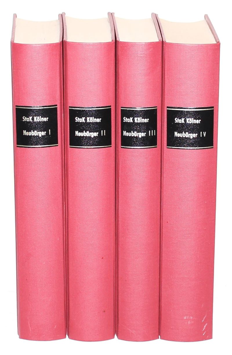 8vo. Zusammen 2.374 Seiten. Neue Ganzleineneinbände mit geprägten Rückentitelschildern. (Mitteilungen aus dem Stadtarchiv von Köln, hrsg. von Hugo Stehkämper, 61-64). Exzellenter Zustand!