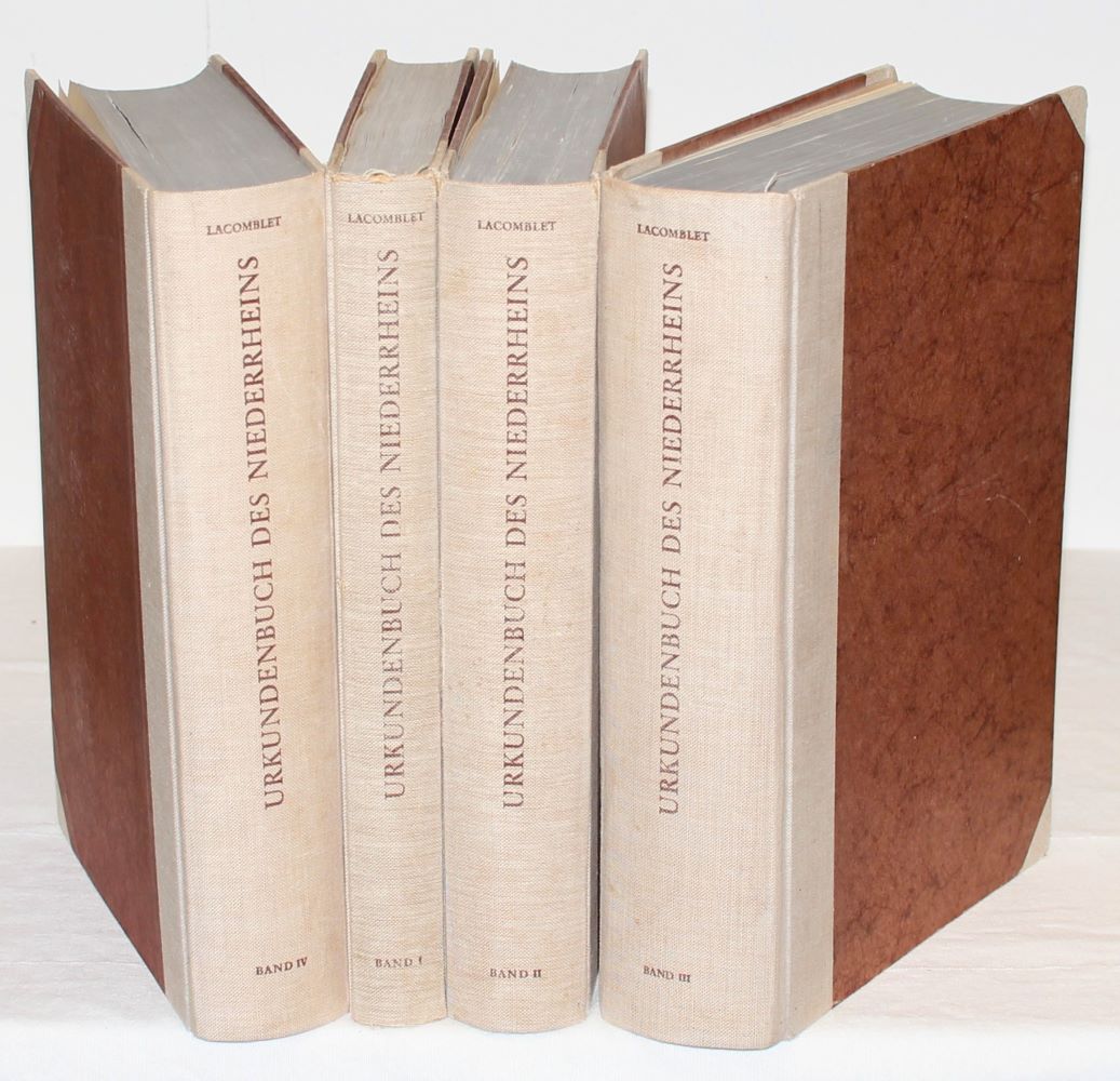 Unveränderter Neudruck der Ausgabe 1840-1858. – Der gebürtige Düsseldorfer Lacomblet (1789-1866) war Leiter des Preußischen Provinzialarchivs in Düsseldorf, der heutigen Abteilung Rheinland des Landesarchivs Nordrhein-Westfalen. – I. (in zwei Abtheilungen:) Von dem Jahr 779 bis 1200 einschliesslich; II. (in zwei Abtheilungen:) Von dem Jahr 1201 bis 1300 einschliesslich; III. (von dem Jahr 1301 bis 1400).; IV. (Erste Haelfte: die Urkunden von 1401 bis 1500).